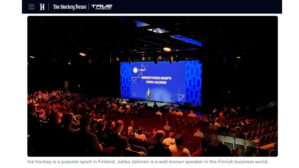 Asiakastöiden lisäksi olen kirjoittanut jotain myös aivan ilmaiseksi ja puhtaasti omasta mielenkiinnosta. Tämä kirjoitustyö on kohdistunut omaan intohimooni eli jääkiekkoon. Olin taannoin #Myyntihype-seminaarissa, ja siellä oli puhumassa muuan mestarivalmentaja Jukka Jalonen. Tein hänen puheesta ensin oman blogin The Hockey Newsiin ja sieltä Italian jääkiekkoliitto lainasi juttuani. Sen voit lukea italiaksi täältä.